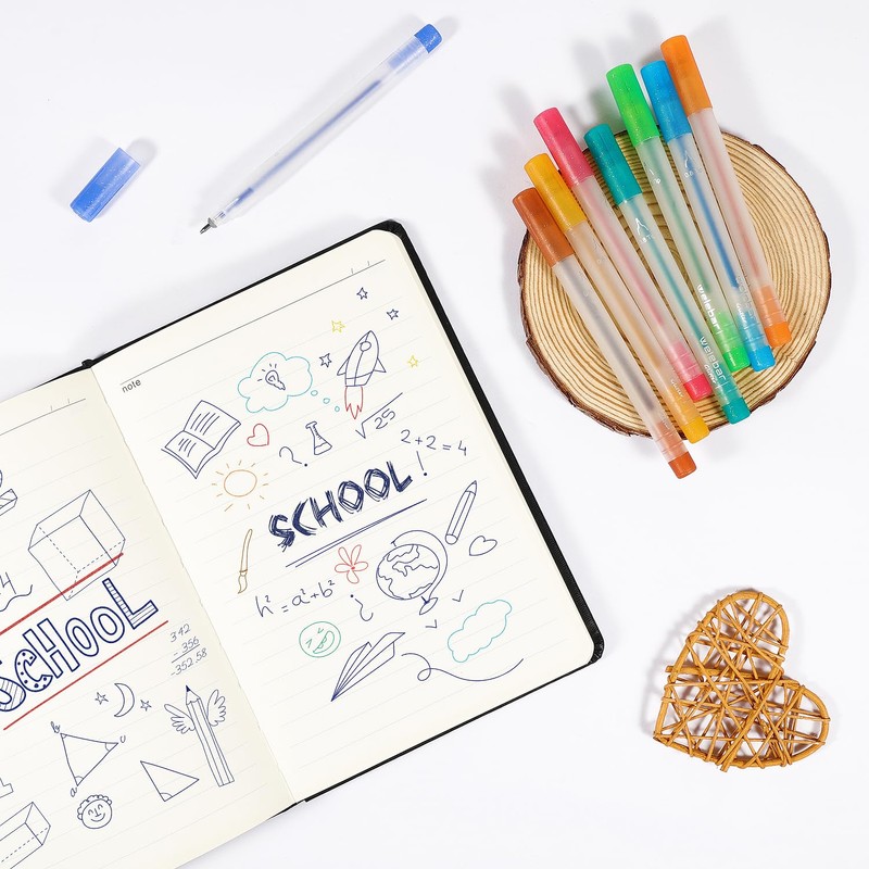 - CONVENIENT STORAGE SOLUTION: Included is a plastic storage box that keeps your 12 glitter gel pens neatly organized for everyday use and easy portability. To prolong the pens' lifespan, remember to cap the tips when not in use.