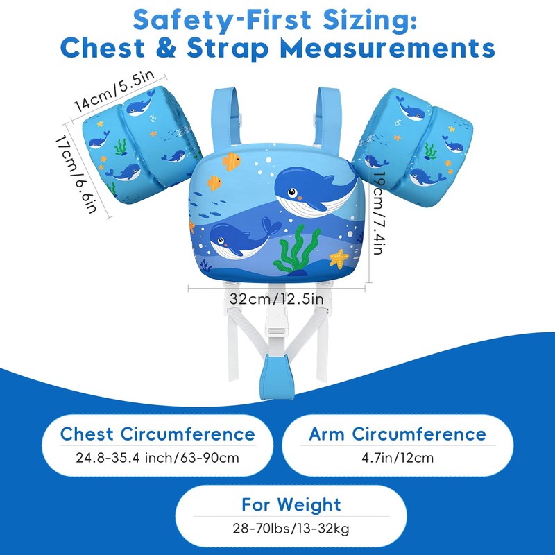 - Dual Shoulder Harness for Versatile Use: Switch between X-Back (extra-secure fit for active swimmers) and U-Back (easy on/off with free movement). Both styles use reinforced straps and double-layered sleeves tested for 50+ lbs buoyancy.