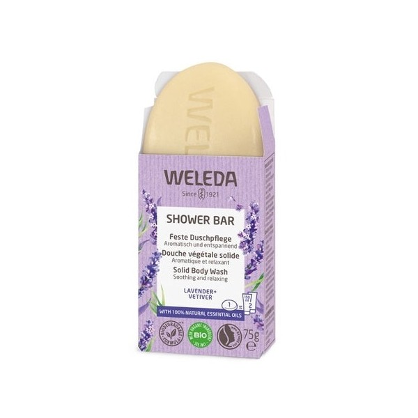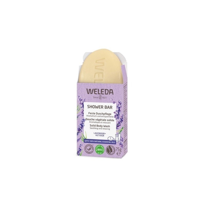Weleda’s Shower Bar Lavender & Vetiver - pamper your senses with a relaxing, soothing fragrance with 100% natural essential oils.