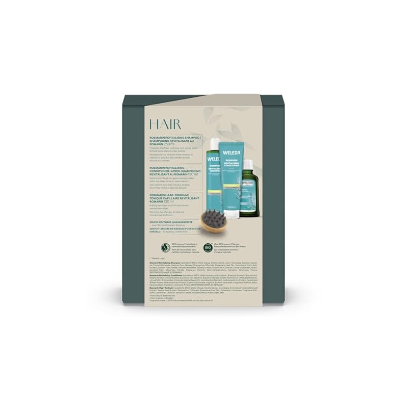 WELEDA Organic Rosemary Hair Care Gift Set Including Head Massage Brush