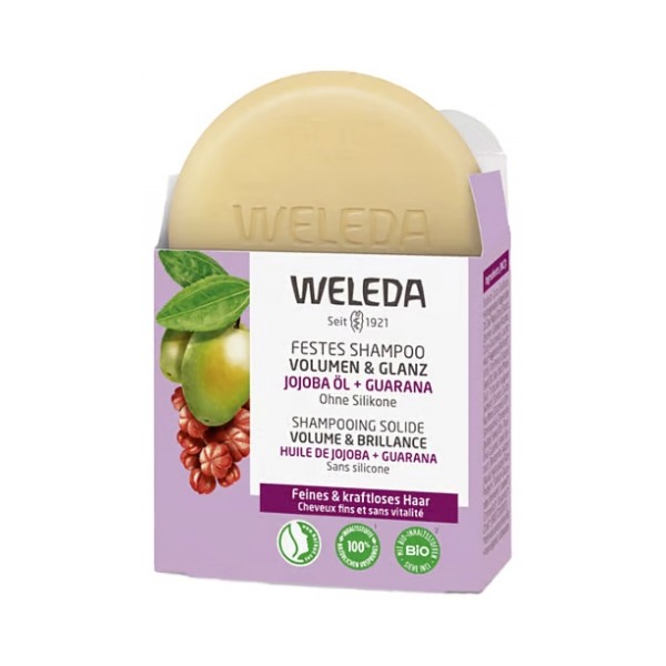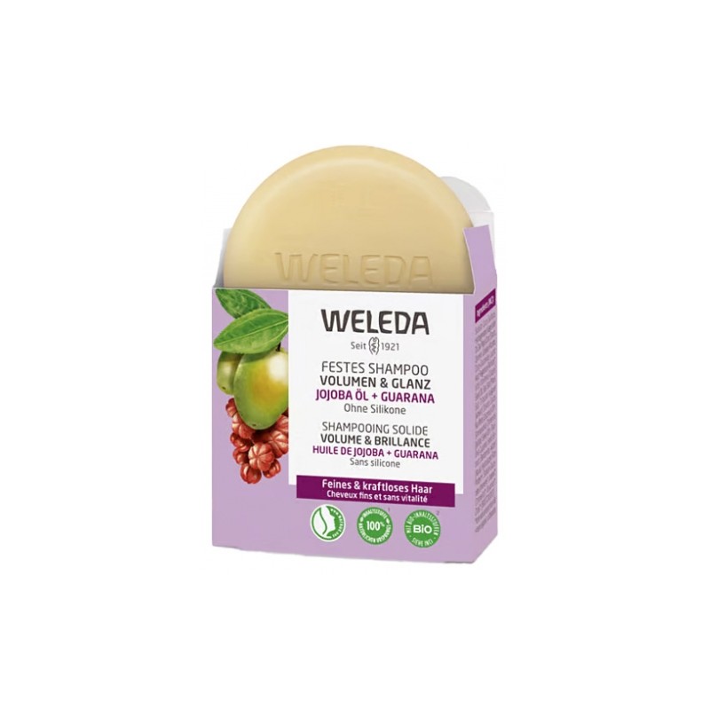 Weleda Shampoing Solide Volume & Shine 50 g provides gentle cleansing while adding volume and shine to your hair.