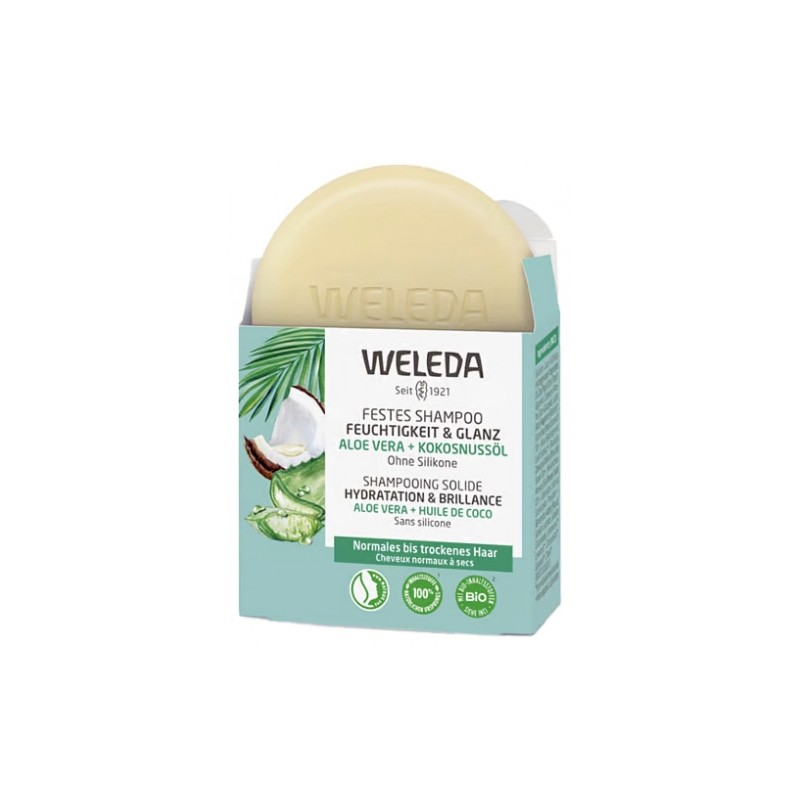 Weleda Shampoo Solid Hydration & Shine 50 g gently cleanses normal to dry hair while moisturizing and preserving its natural shine, without weighing it down.