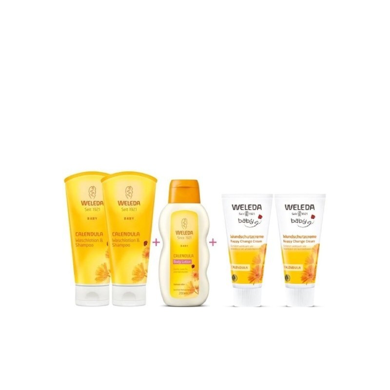 Weleda WelBox3 2x Calendula ShampooShowergel 2x200ml 2x Baby Cream 2x75ml Body Milk for BabiesChildren 200ml