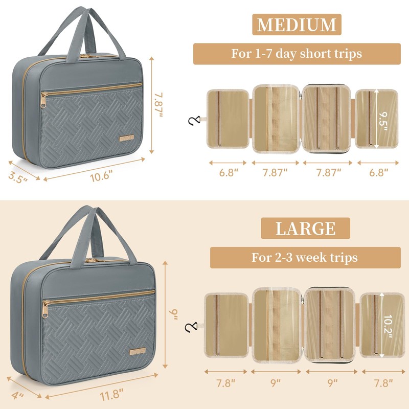- 【Stylish and Practical】With stylish colors and modern design, our travel bag for toiletries is not only practical but also beautiful. It can complement any travel set while providing the functions you need on the go