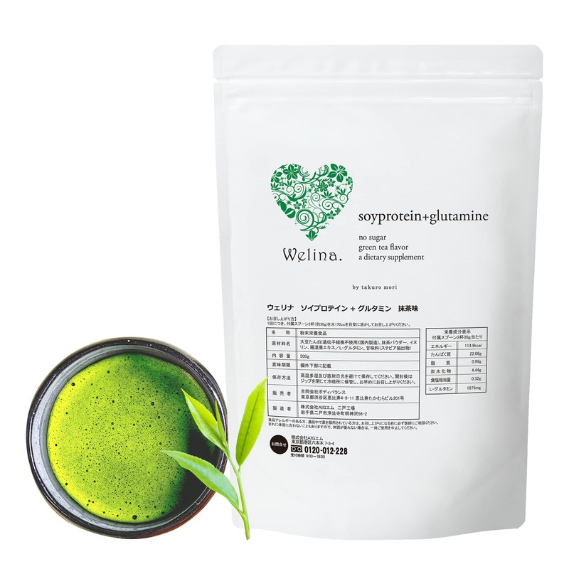 Welina. 森拓郎監修 ソイプロテイン+グルタミン (抹茶味) 500g
