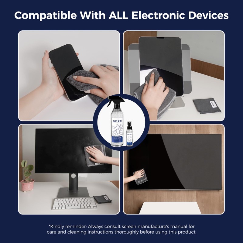 WELKIN Screen Cleaner Spray Kit (250ml + 60ml) - Cleaning Gel for TV, Laptop, Computer, Phone Touchscreen -2 Sprayers,1 Microfiber Cloth & 1 Glass Wipe