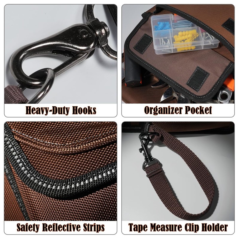 - Ample Storage: The tool belt pouch has 10 pockets and an electrical tape thong, the pockets are 7.5" deep to prevent the tools from falling out and provide plenty of storage space for all your tools