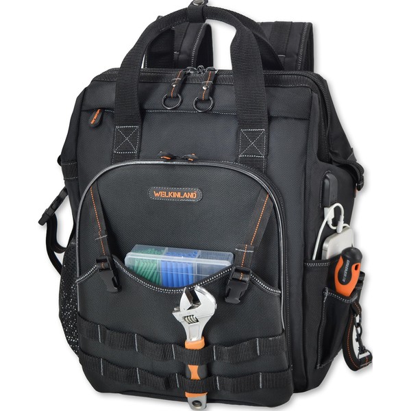 WELKINLAND 55-Pockets Tool backpack, Tool bag backpack, Backpack tool bag, Tool back pack, Electrician backpack, Tool backpacks hvac, Tools backpack heavy duty