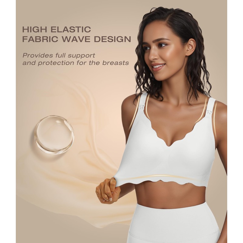 - SEAMLESS & DISCREET COVERAGE: The smooth, wire-free design with removable padded cups ensures an invisible appearance under clothing, making it ideal for professional settings, travel, or casual wear without compromising style. This versatile nursing bra can be adapted to various needs—it functions effectively as a maternity bra, wearable pump bra, sleep nursing bra, light support sports nursing bra, or everyday wear.