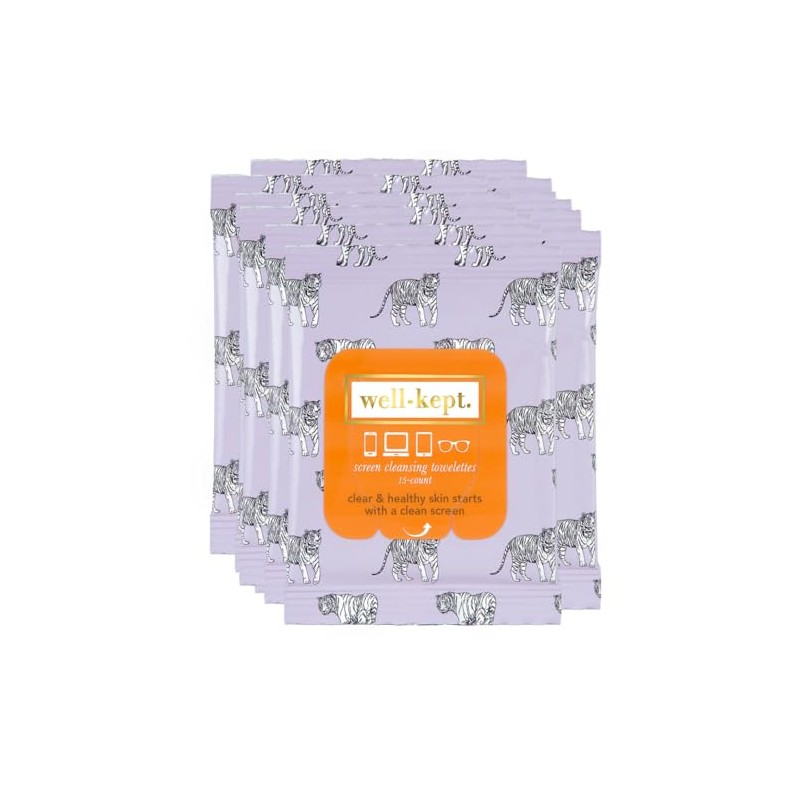 Well-Kept Tech & Lens Cleaning Wipes – Tiger Pose – 15 Count (12 Pack)