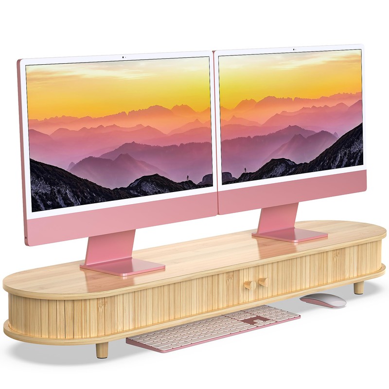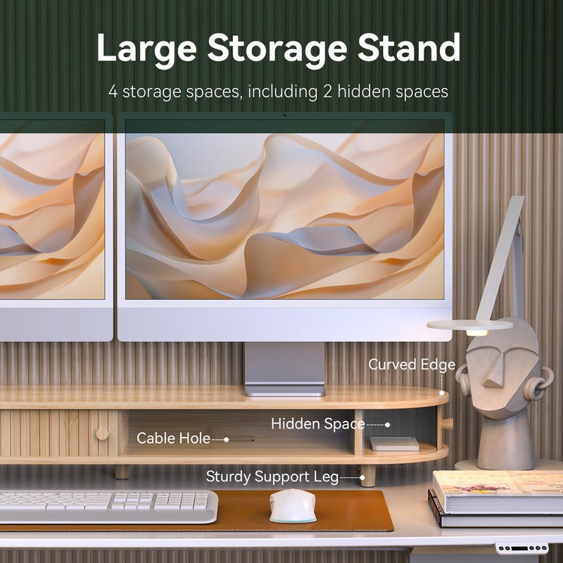 - 【Stylish Design】 Elevate your monitor with this sleek bamboo riser, perfectly complementing your modern workspace.