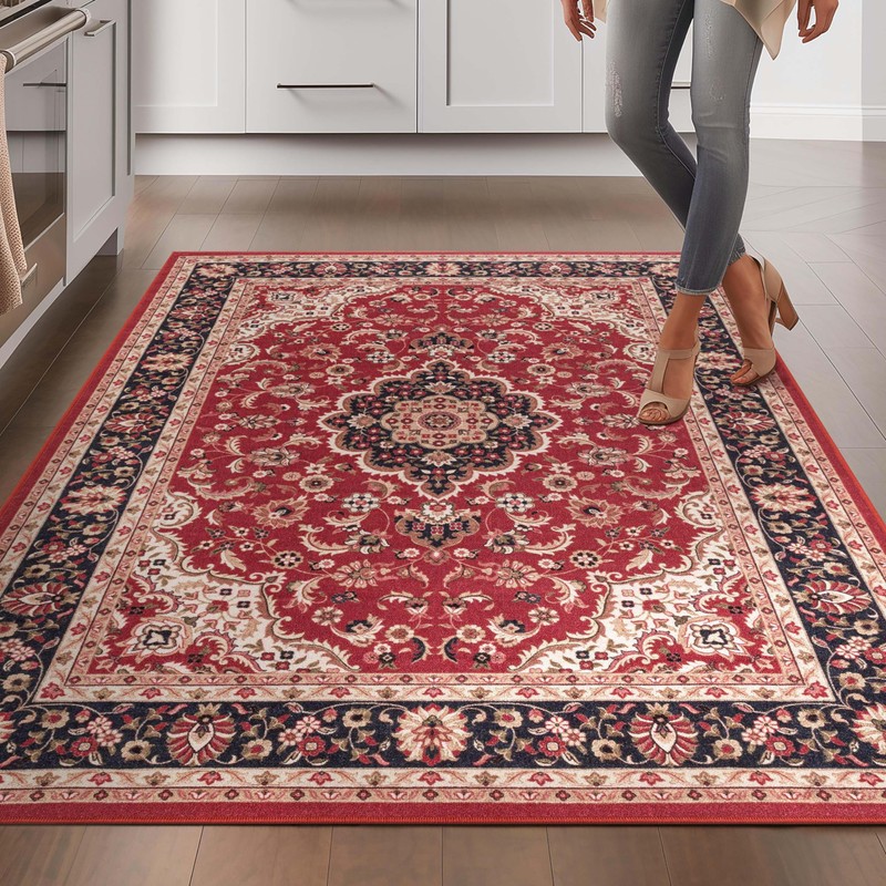 Well Woven Kings Court Gene Red - Non-Slip Rubber Backed Oriental Medallion 5x7 Area Rug - for Living Room & Dining Room - Kid & Pet Friendly, Easy-to-Clean, Machine-Washable, Low Looped Pile