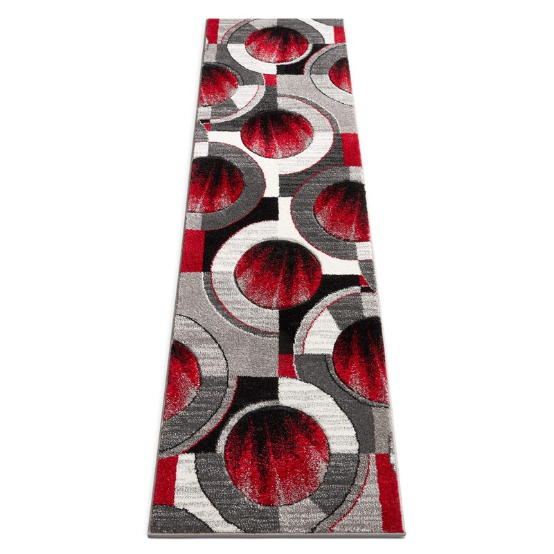 Well Woven Sunburst Red, Light Grey, Charcoal Modern Geometric Comfy Casual Hand Carved 2x7 (2' x 7' Runner) Area Rug Easy to Clean Stain Fade Resistant Abstract Contemporary Thick Soft Plush