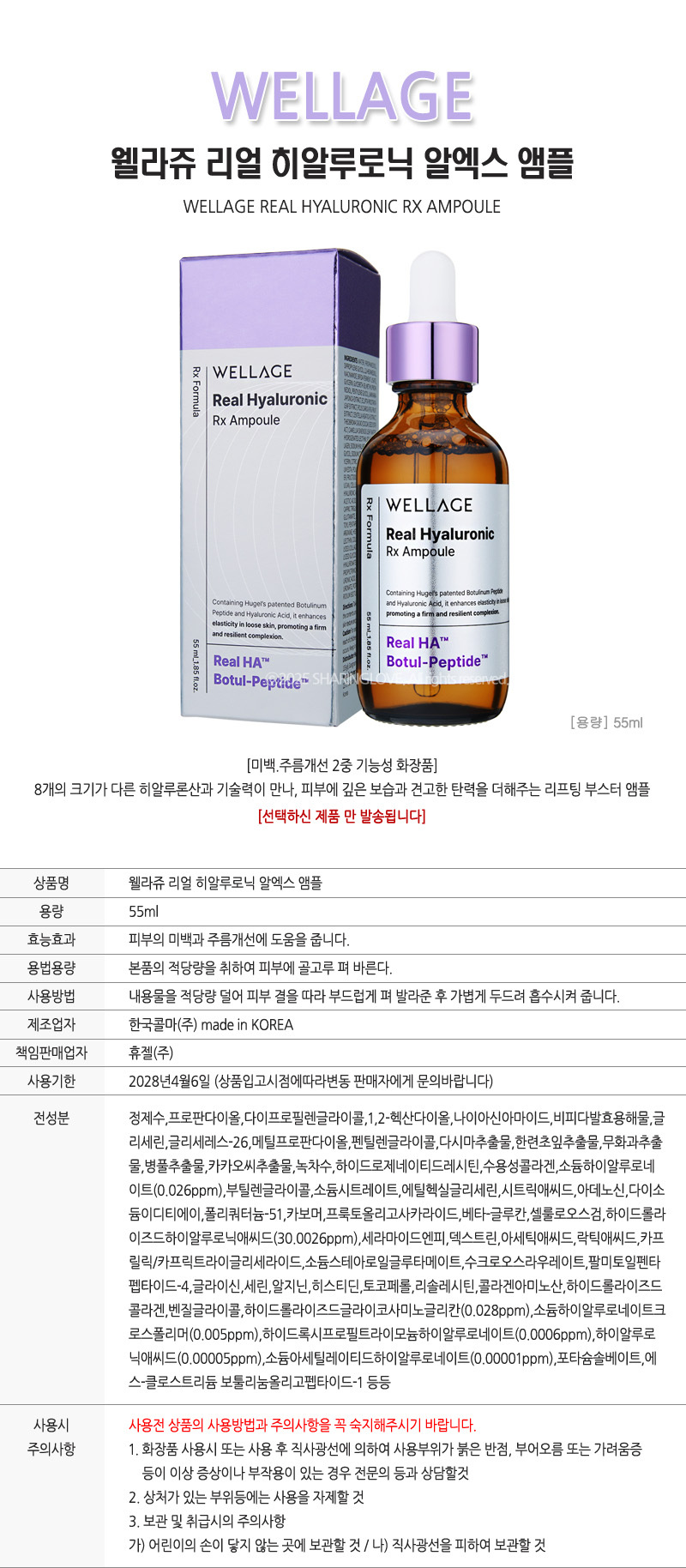 Wellage Real Hyaluronic RX Capsules 3 Boxes (21mg X 54EA) + Ampoule 55ml / 웰라쥬 리얼 히알루로닉 알엑스 캡슐 3박스 (21mg X 54EA) + 앰플 55ml