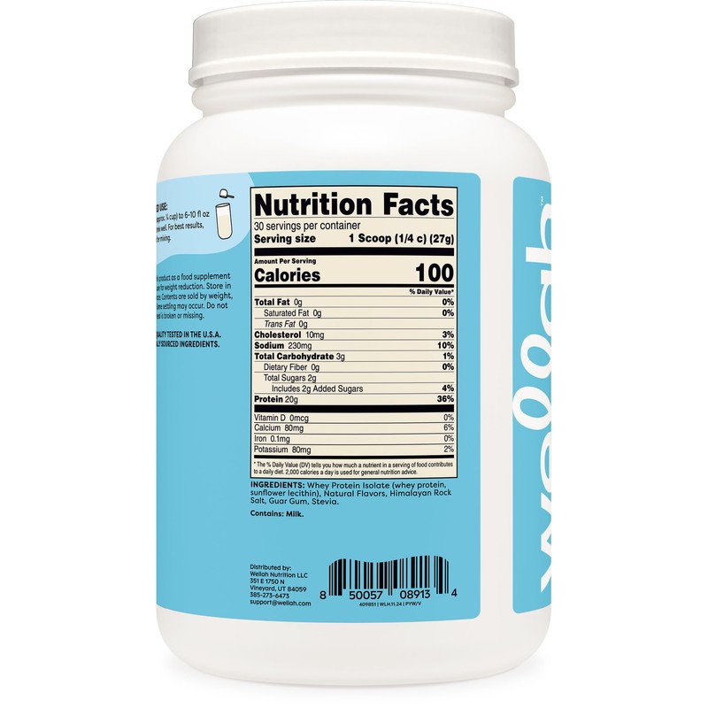 Discover Protein Your Whey by Wellah, a meticulously crafted whey protein isolate powder designed to cater to your nutritional needs. Your Whey is available in four tempting flavors: Milk Chocolate, Vanilla, Dark Chocolate, and Coconut. Elevate your protein intake with the assurance of a product manufactured in an NSF Certified, GMP Compliant facility, subject to stringent third-party testing. Protein Your Whey is your reliable companion, providing 30 servings per container to support your active lifestyle. Fuel your muscles with confidence, and make Protein Your Whey a part of your daily routine.