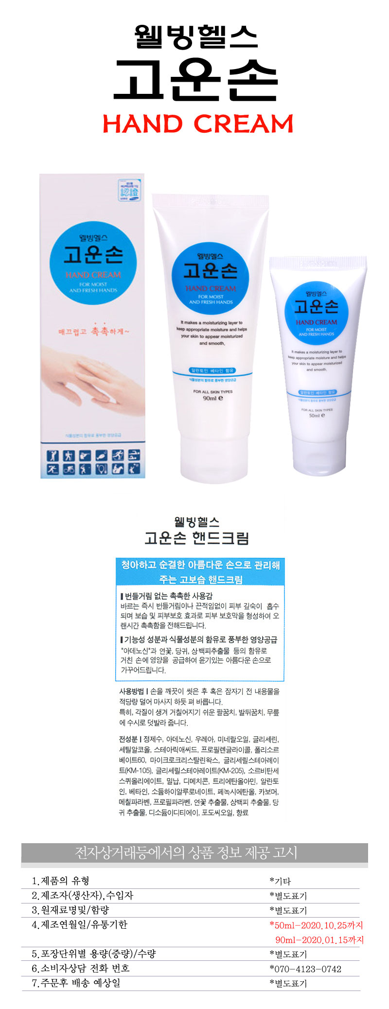 Wellbeing Health Gounson 50ml / 웰빙헬스 고운손 50ml X 3개/핸드크림/손크림/고보습