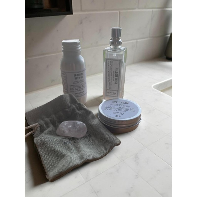- COMPLETE SLEEP KIT: Comprehensive wellbeing set featuring 50ml soothing bath oil, 30ml eye cream, rose quartz healing stone, and 30ml pillow mist for a perfect night's rest