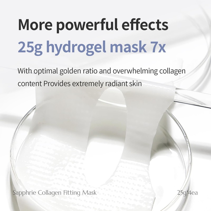 WELLDERMA Sapphire Collagen Impact Fitting Mask, 25g x 4 Sheets – Revitalizing Hydrogel Face Mask with Marine Collagen Complex, Firming & Moisturizing Care