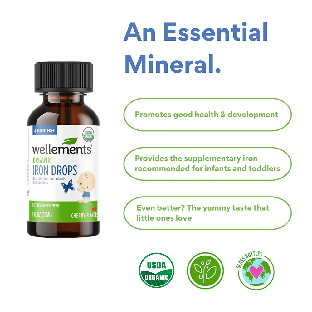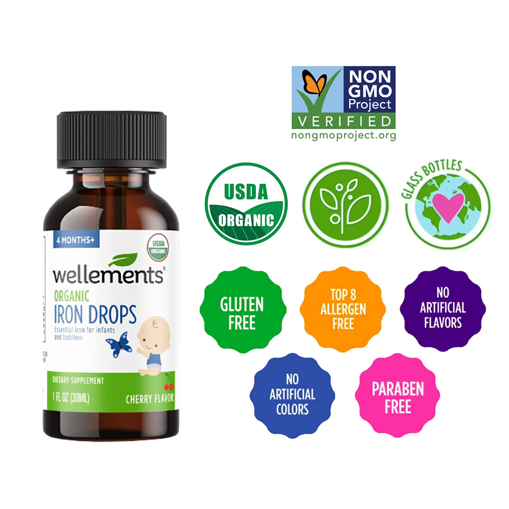 - Organic iron drops for enhanced absorption