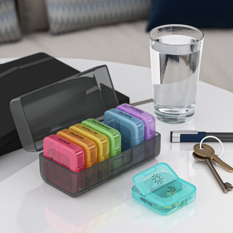 - Perfect readability – the designation of the days and symbols of the time of day are large and clearly printed on each compartment and help distinguish the different days of the week.