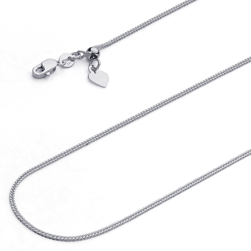 Wellingsale 14K Solid White Gold 0.9mm Adjustable Cable Chain with Lobster Claw Clasp - 20" Inches