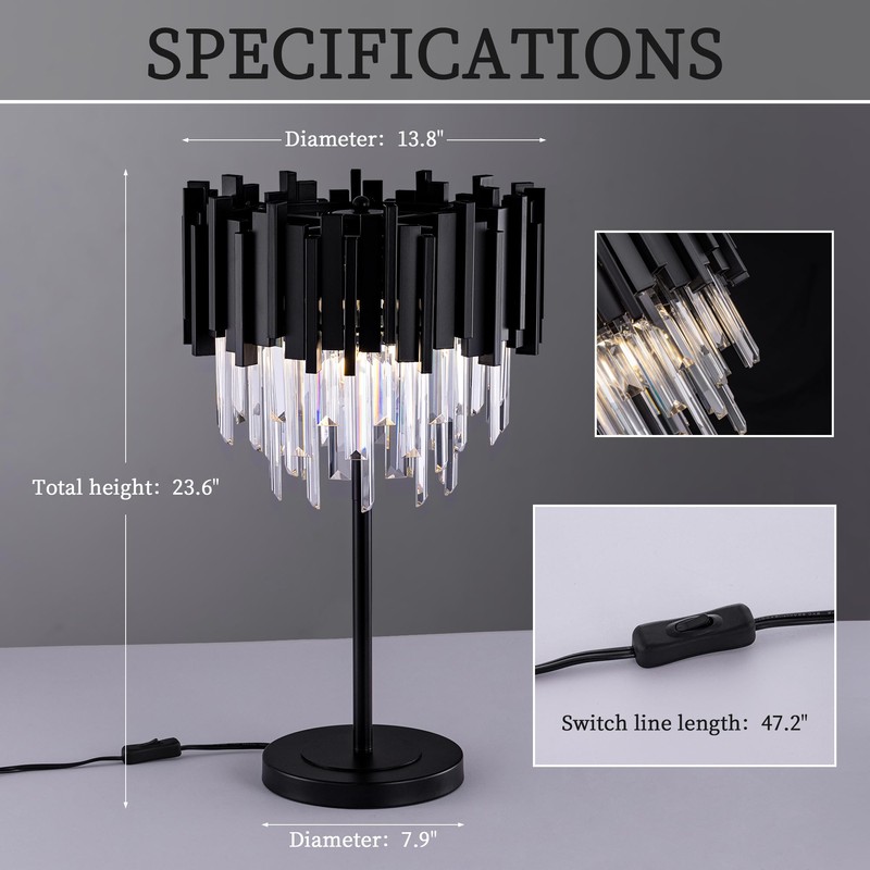 - Multi-functional applications:This black crystal table lamp is not only a lighting tool, but also a highlight of home decoration. It is perfect for use on the bedroom bedside, study desktop or living room coffee table, which can effectively enhance the overall aesthetics of the space
