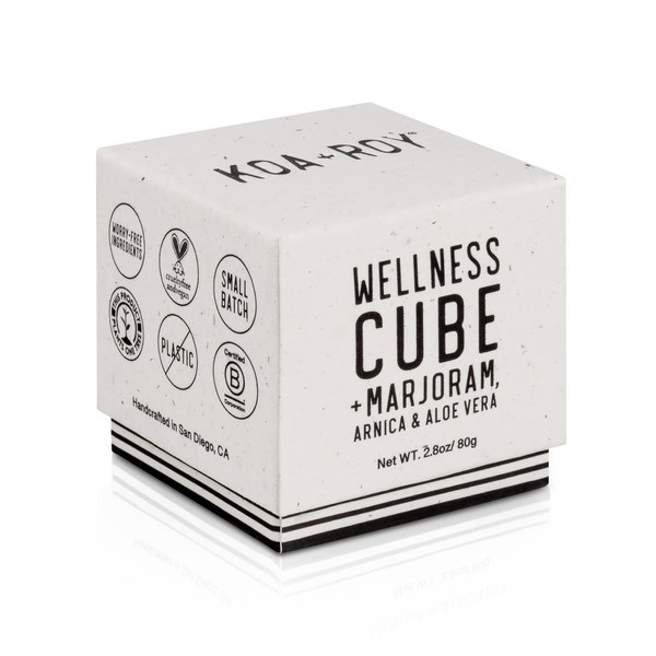Take your skincare routine to the next level with the KOA+ROY Wellness Cube. Sometimes we forget to make time for our daily body-care routines and that's why we made something quick, effective, and easy for you! Wellness Cube is an all-natural way to help your body relax while softening your skin. Our powerful blend of botanicals and essential oils uses aromatherapy to provide a soothing and relaxing experience leaving you energized for the rest of the day. Directions: Massage the cube on your skin until the desired amount of oil is released. Use the cube to work into those sore muscles and joints, concentrating on the painful and swollen areas. You can also ask your loved ones to help you massage those hard-to-reach spots. Portable enough to be taken anywhere— Repeat as needed.