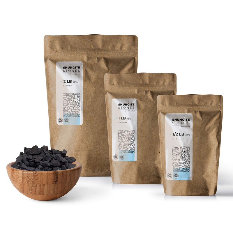 wellness hut Shungite Stones Authentic Tier III Karelian Rocks for Drinking Water Infusion - Natural Minerals with High Fullerenes Content - 1-Pound Bag
