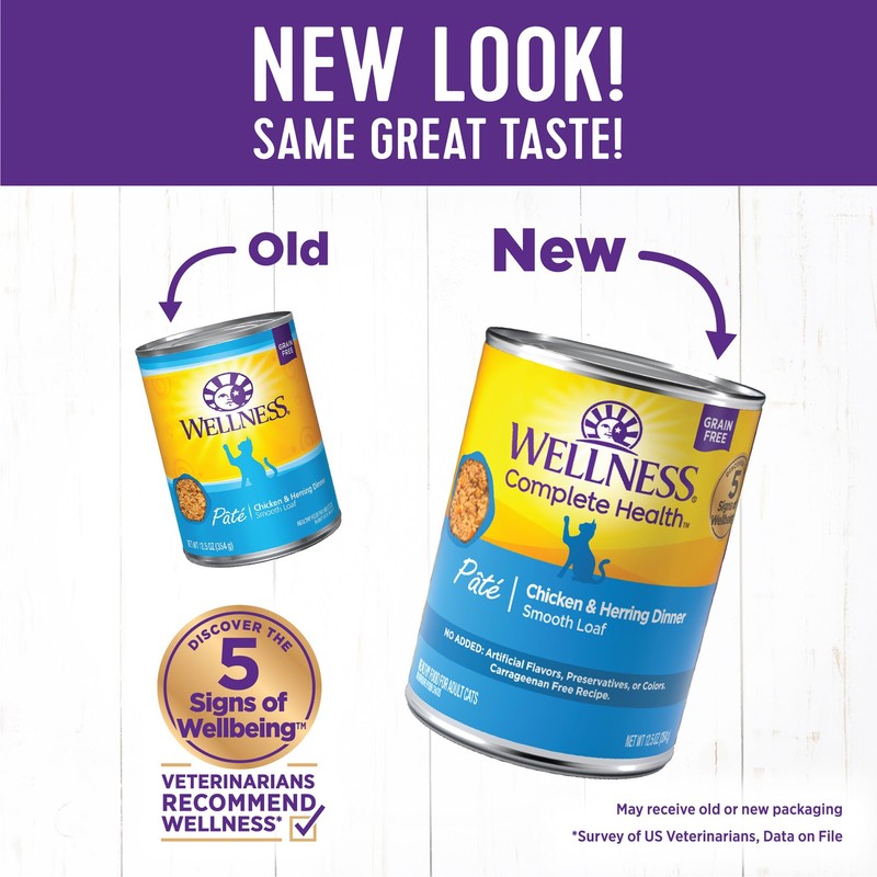 Wellness Wellness Complete Health Pate Adult Wet Cat Food, Natural, Protein-Rich, Grain Free, 12.5 Ounce, 12 Pack, (Chicken & Herring)