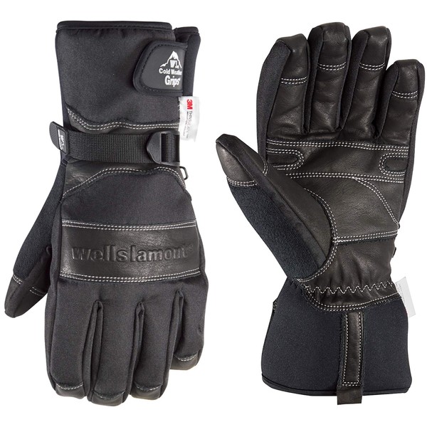 Wells Lamont Men's Black Leather Palm Winter Gloves with Waterproof Insert, Large (7660LBK)
