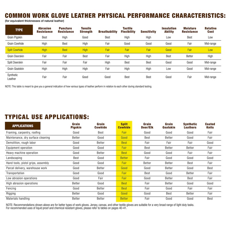 - HEAVY DUTY - Premium split cowhide leather with split cowhide cuff