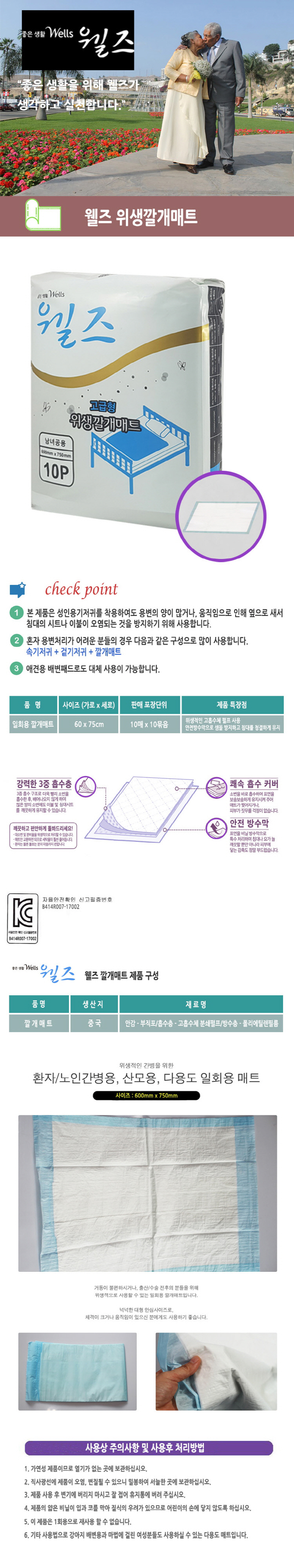 Wells sanitary rug mat 10 sheets - pulp 10 pack one box / 웰즈위생깔개매트10매-펄프 10팩 원박스