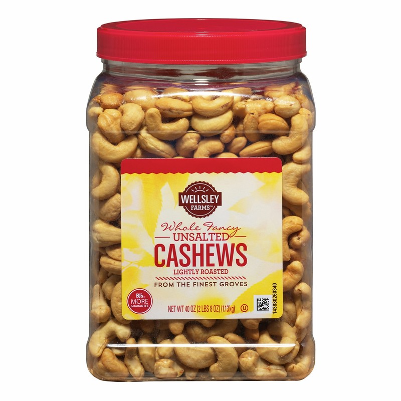 Wellsley Farms Unsalted Roasted Whole Cashews, 2.5 lb.