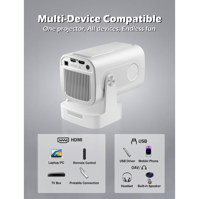 - High-Speed Wireless Connection: Supports dual-band WiFi 6 and Bluetooth 5.4 to ensure smooth 4K HD projection throughout the entire process, achieving millisecond-level connection with laptops, phones to ensure accurate synchronization of audio and video