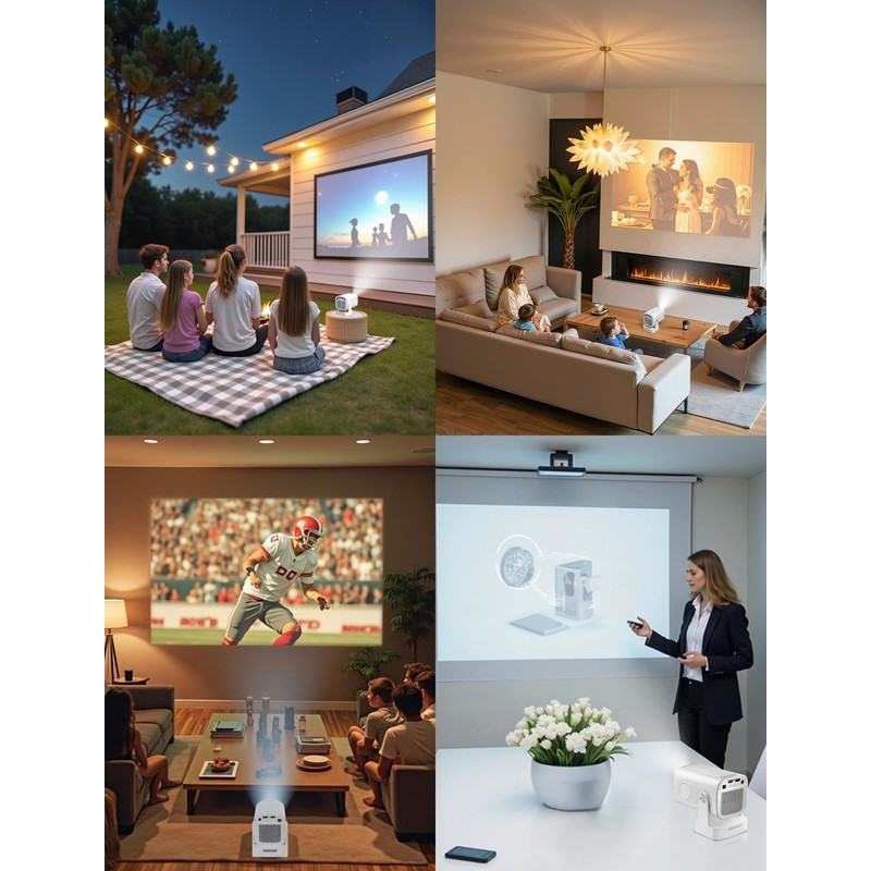 - Outdside Projector that Meets Multiple Scenarios: Support 40"-130" screen adjustment, it can be used in compact scenes such as offices, bedrooms and home for use, and can also meet the immersive experience in open spaces such as backyards and camping
