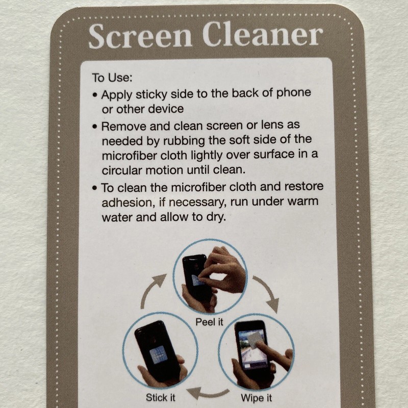 - To clean the microfiber cloth and restore adhesion, if necessary, run under warm water and allow to dry.