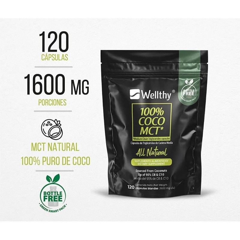 Wellthy 100% Coco Mct All Natural 120caps Sabor Neutro