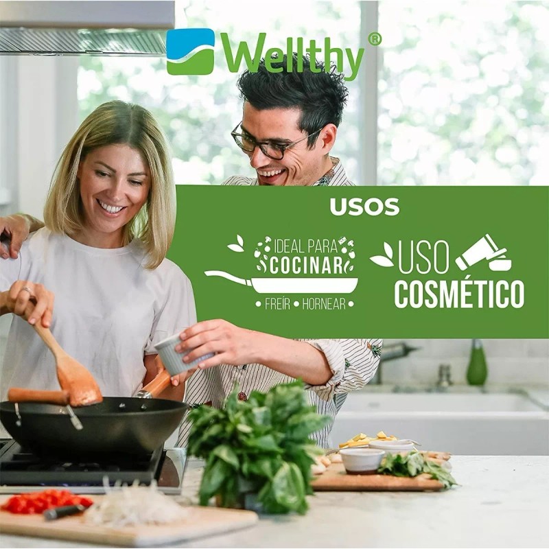 Wellthy Aceite De Coco Virgen Orgánico 930 Ml Wellthy Prensado Frío