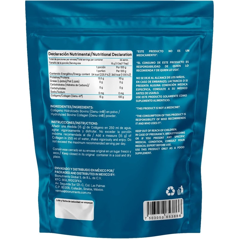 - Practicidad: 1kg gramos totales para 66 porciones de 15g para mas de 2 meses de consumo.