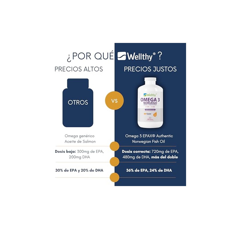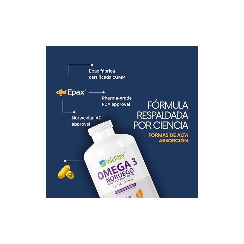 🌟 ⭐ Wellthy Omega 3 Noruego Epax® 400 Cápsulas. El aceite de pescado Epax® está ultraconcentrado en omega 3 con un 36% de EPA y un 24% de DHA. Cápsula de Gelatina Blanda. ⭐ 🌟