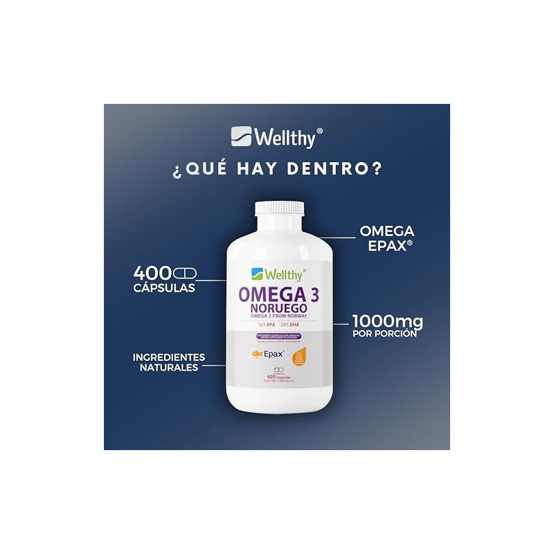 Wellthy Omega 3 Noruego Epax 400 Cpsulas. El aceite de pescado Epax est ultraconcentrado en omega 3 con un 36 de EPA y un 24 de DHA. Cpsula de...
