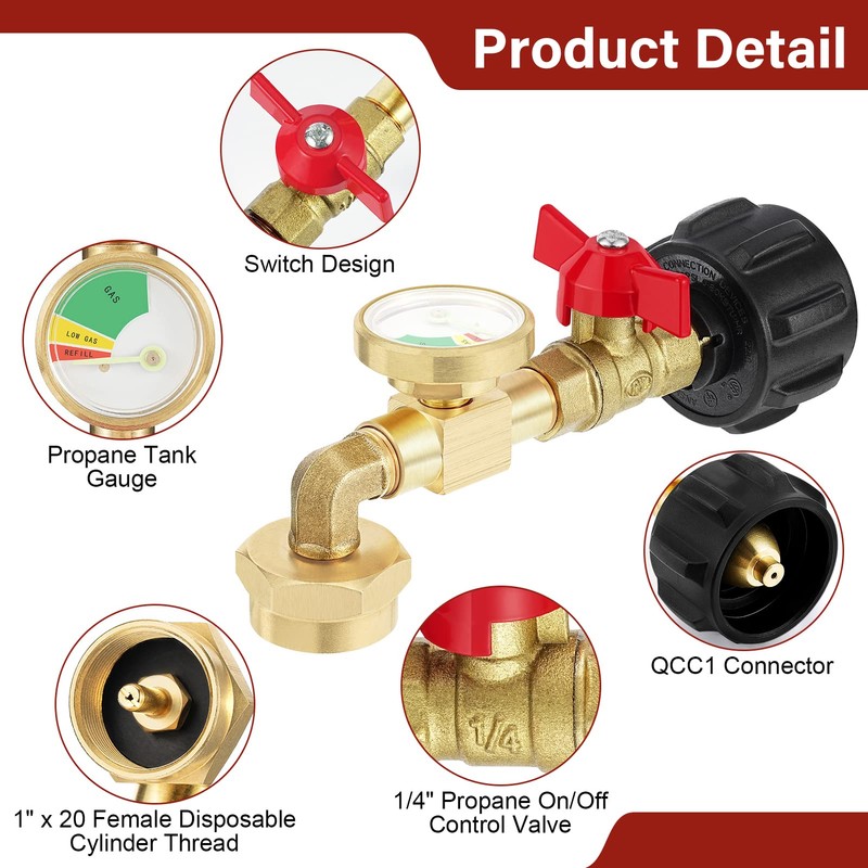 - 【Three Color Luminous Dial】--- The propane fill adapter 1lb to 20lb with 3 different colors dial gauge helps you easy to read and monitor the gas level without necessarily removing the tank, which allow you to detect the leaks. Even in the dark, our luminous dial still allows you to see the oil level clearly.