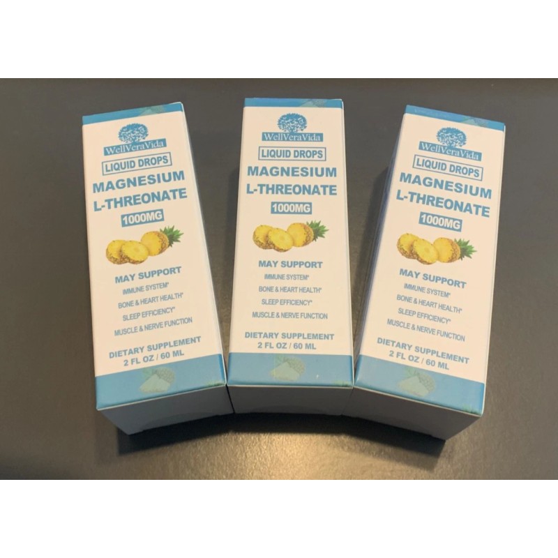 WellVeraVida Magnesium L-Threonate Liquid, Triple Sleep 2 Fl Oz (Pack of 3) Pineapple. NEW!