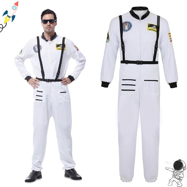 - [High Quality Fabric]:Our adult one piece astronaut suit is made of high quality polyester material, which is comfortable and non-irritating, durable and not easy to tear. You will not feel stuffy or stiff when using and playing.