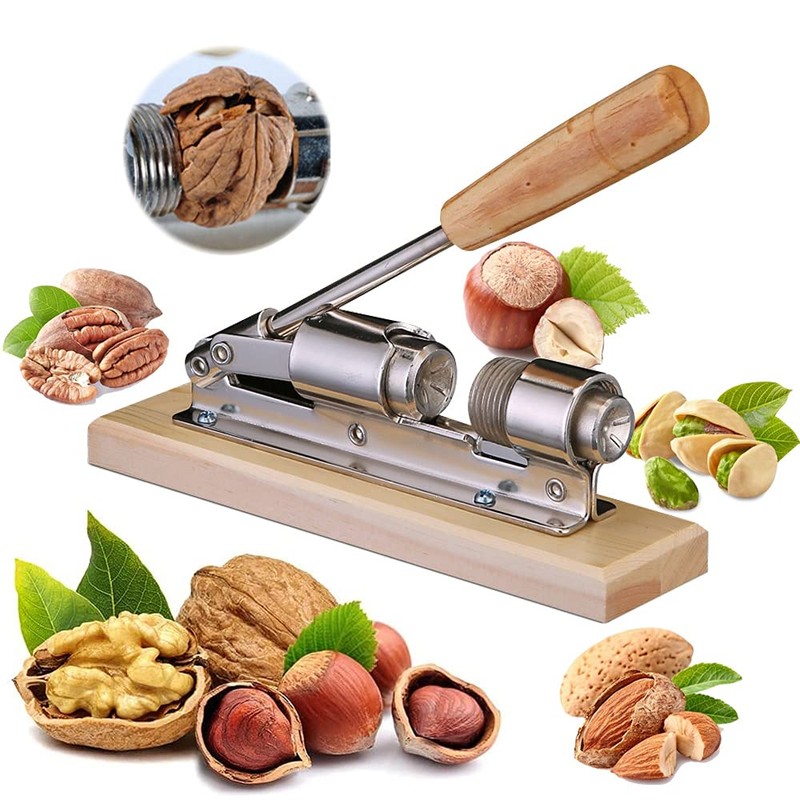 - Adjustable size: the opening can be adjusted as you need it simply turn the screw. The nutcracker knives focus on an ergonomic handle that is easy and comfortable to grip. Hardwood base is easy to place on the desk and ensures stable operation.