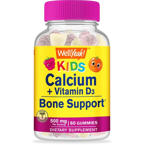 WellYeah Calcium 500mg + Vitamin D3 1000 IU (25 mcg) Gummies for Kids - Bone Health and Muscle Supprt, Immune Support Gummy, Non GMO, Gluten Free, Mix Fruit Flavors - 60 Gummies