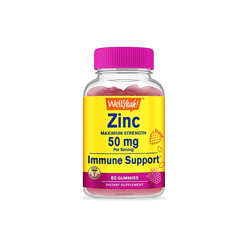 WellYeah Zinc Gummies 50 mg - Supports Healthy Immune Function and Antioxidant Health - Natural Berry Flavor - Gluten-Free, GMO-Free - Chewable Gummy Dietary Supplement - 60 Gummies