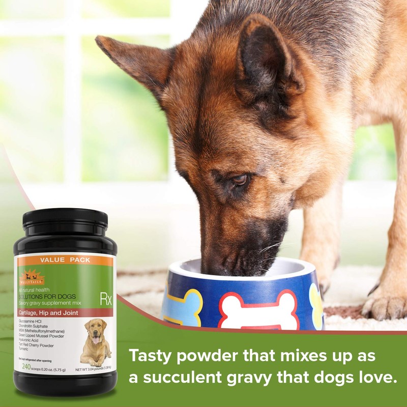 - This is one all natural supplement your dog will not only love, but you'll feel good giving to him. Reduce your dog's pain and increase their vitality with a nutritional supplement they'll love so much, they'll lick their bowl clean!