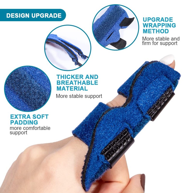 - Thick and breathable materials -- Our finger stabiliser is made of thicker fabric and breathable composite cotton. Keeps your finger dry and comfortable during lively activity. Aluminium support splint provides solid support and prevents finger bending