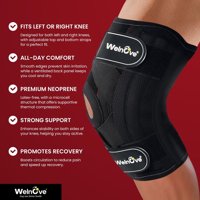 Welnove Knee Brace Support & Compression. Knee Sleeve Cross Straps for Knee Stability, Side Stabilizers for Running, Workout, Meniscus Tear, ACL, MCL, Arthritis - Men and Women(XX-Large)
